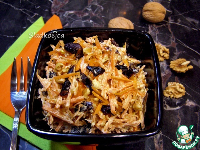 Рецепт «Салат из моркови с орехами и черносливом»: