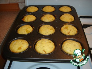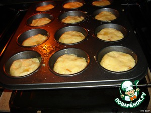 Выпекать минут 20-25 при темп. = 170-180 гр. до готовности. Готовность проверяем деревянной шпажкой, если сухая, значит испеклись.