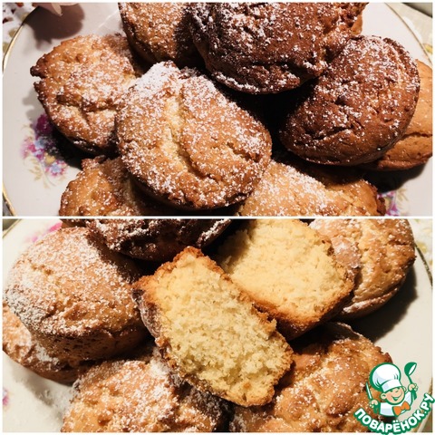 У маффинов тесто примерно как песочное, со вкусом кокоса. Легкая выпечка - не наполненная большим количеством жиров.