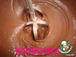 Если хотите тортик маленький берите продукты все в таком количестве которое указано, но я захотела большой потому все удвоила.Продукты для теста и сметана взбиваем в вот такую массу что было тесто как густая сметана, если какао не очень коричневое так можно больше его добавить, что бы обеспечить цвет хороший и вкус.