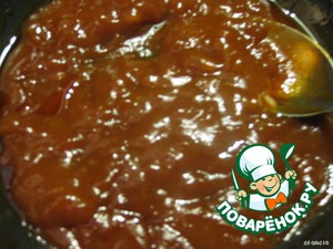 • Сделать соус, смешав все ингредиенты (кроме крахмала), помешивая и уваривая на слабом огне, затем затянуть крахмалом.