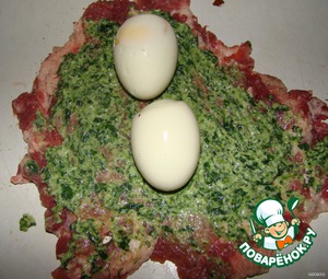 Рецепт «Мясной рулет со шпинатом и яйцом»: