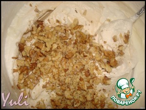 Добавить сахар, сироп, измельченные орехи, цедру, взбивать 2 мин., вливая тонкой струйкой подготовленный желатин.