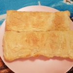 Разморозить готовое тесто при комнатной температуре. Смазать его слегка растительным маслом. Разрезать на 12 прямоугольников и каждый раскатать в одну сторону, но не тонко.
