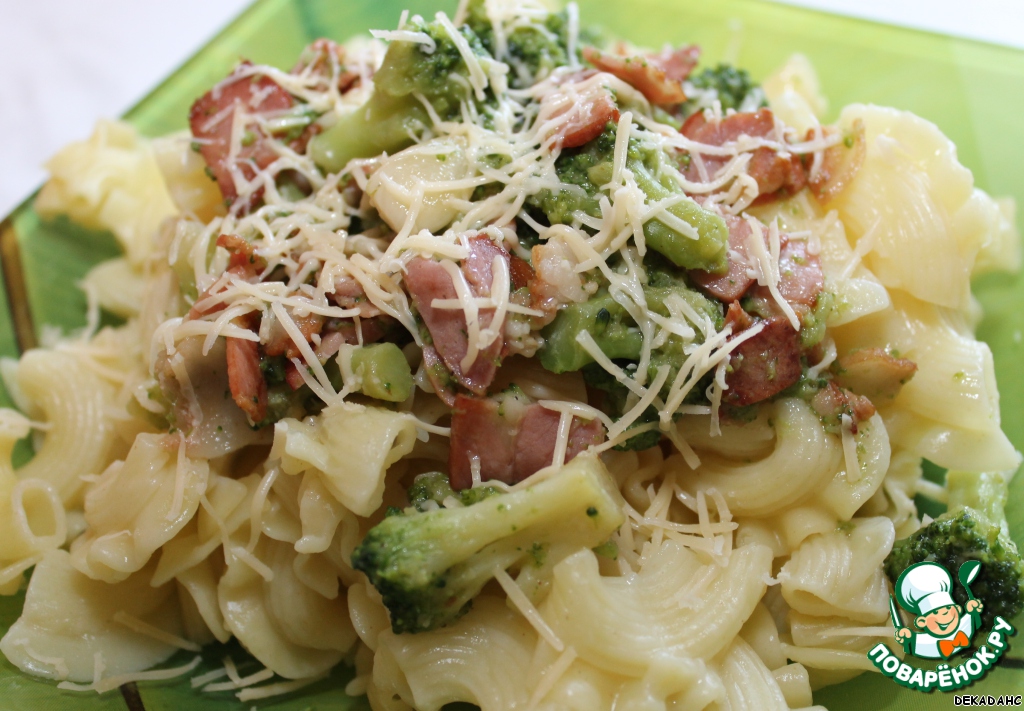 Очередной блиц-рецепт, найденный у Юлии Высоцкой. Я жутко не хотела готовить ужин, просто не было желания ни готовить, ни кушать, только осознание того, что с минуты на минуту вернется с работы голодный муж, заставило меня отправиться на кухню. К моему удивлению, всего за 15 минут получился такой отличный ужин... даже аппетит разыгрался! И мужу очень понравилось сочетание макарон-ракушек с брокколи, беконом и сыром. Ну очень вкусно!