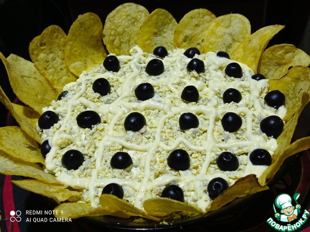 5 – размятая вилкой печень трески (майонез между луком и печенью трески жирно будет),
