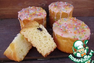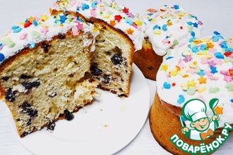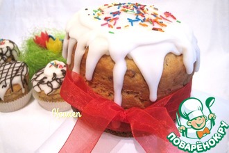 Сахарная головка: 2 яичных белка взбить миксером с 200 -300 гр сахарной пудры, смазать теплые куличи.