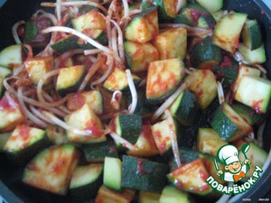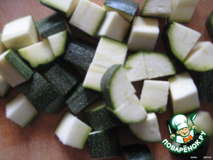 Кабачки вымыть и нарезать крупными кубиками (не очищая).
