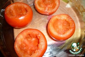 • Пока коктейль жарится, подготовить помидоры, вынув сердцевину и превратив их в подобие чашечек