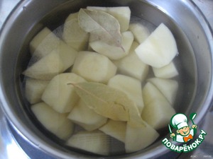 • Картофель нарезать крупными кубиками и поставить варить в подсоленой воде.
