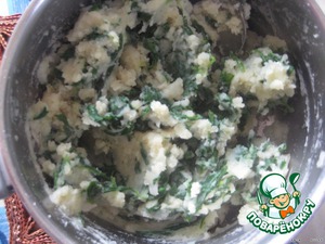 • Из сваренного картофеля делаем пюре, перемешаем со шпинатом,..