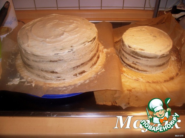 Коржи смазать пропиткой (хотя можно и без этого - они и так очень мягкие)