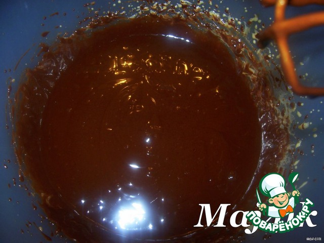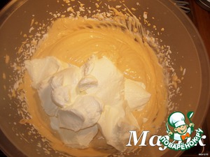 К шоколадной массе аккуратно подмешать 1/3 взбитых белков и перемешать.