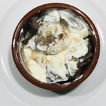 Выкладываем слоями в горшочки: сначалa печень, затем огурцы, затем грибы, солим только печень, соли немного, так как огурцы и грибы уже соленые.