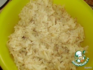 Картофель, сваренный "в мундире", очистить и натереть на крупной терке.