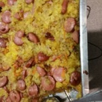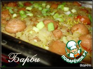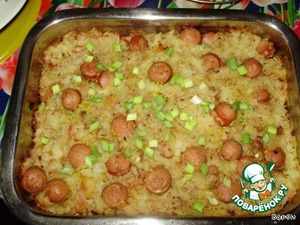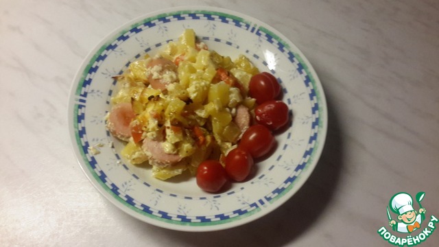 [+4]Я обжарила лук и морковь, сырой картофель нарезала небольшими кубиками, плюс ( пяточки) и залила все это сливки + яйцо. Специи по вкусу.