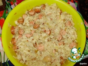 Все смешать, посолить, приправить приправой для блюд из картофеля.