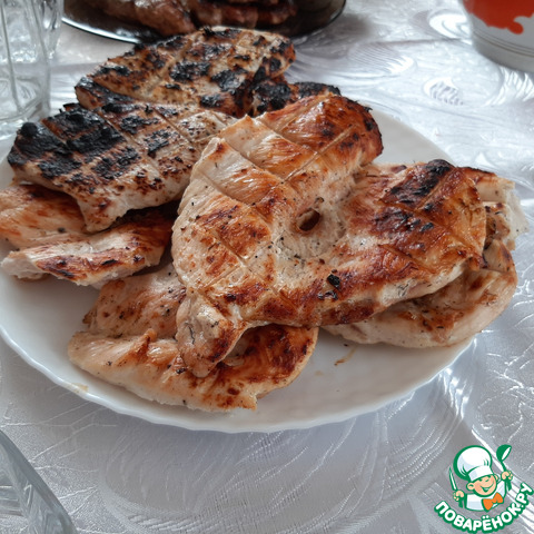 P. S. Количество ингредиентов зависит от количества едоков. Мы брали 5 кг мяса на 10 человек. Ушло примерно 250 мл масла и 1,5 л минералки, все остальное по вкусу.