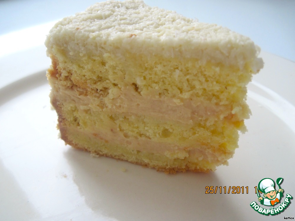 Это количество продуктов рассчитано на форму 32Х38см, я полученное тесто поделила пополам и выпекала в 2 захода в форме 26 см - в результате получилось 4 коржа.