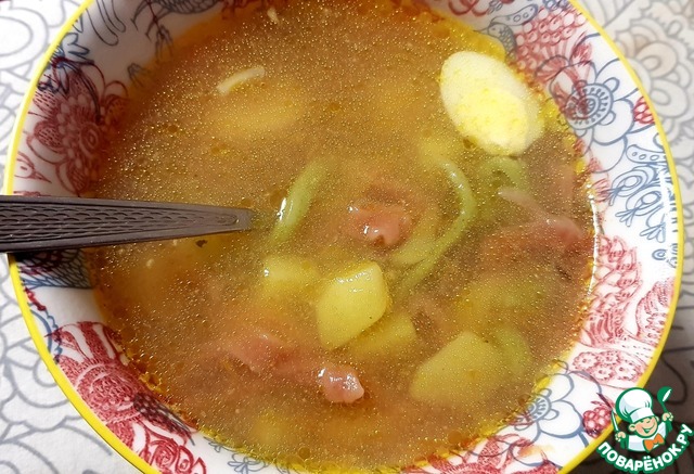 Это супчик из молдавской кухни, очень-очень вкусный и довольно легко приготовить. Такое часто готовят бабушки-старушки в деревне. Можно считать это национальным блюдом!