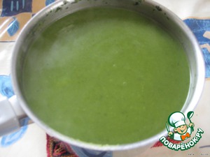 Поставим суп в прохладное место на полчаса для охлаждения, затем измельчаем его блендером,