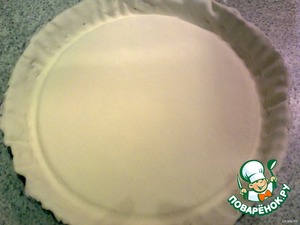 Выложить наш пласт теста и аккуратно прижать к стенкам формочки.