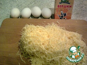 В глубокой миске (или кастрюльке) смешать яйца и сливки, немного взбить. Всыпать тертый сыр, посолить по вкусу.