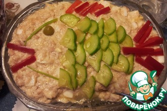 9. Этим соусом заправить салат, аккуратно перемешать. (заправлять перед подачей)