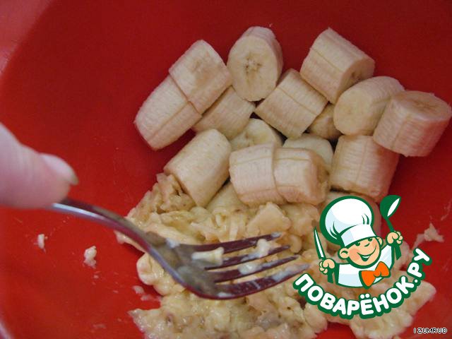 Бананы размять в глубокой миске.