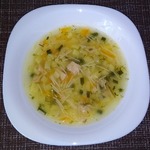 После того, как сварился бульон, нужно вытащить куски курицы, а также удалить морковку и лук.