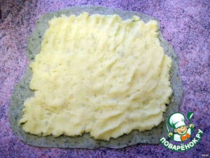 На наш квадрат кладем картофельное пюре, разравниваем.