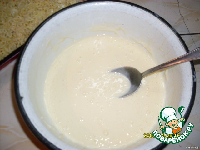 Заливаем блюдо, посыпаем оставшимся сыром и ставим в духовку