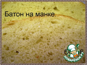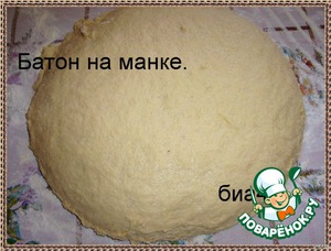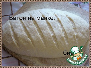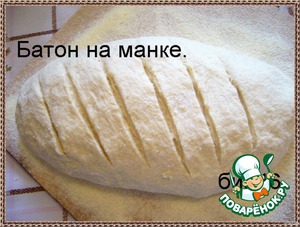 Сформируем батон, разделочную доску обильно присыпем манкой и аккуратно перенесем на нее наш батончик, сделаем на нем насечки, накроем полотенцем и оставляем для подъема на 30 минут.