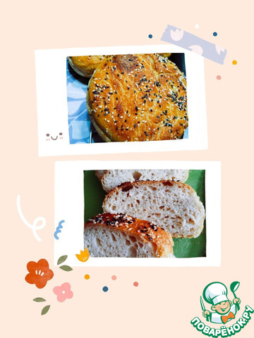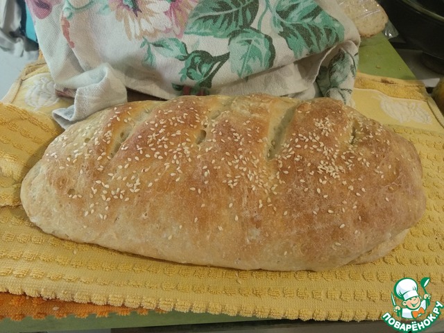 Батончик хорошо подрос и готов отправиться в разогретую заранее духовку, сбрызнем его водой, присыпем кунжутом и в духовочку на 35-40 минут.