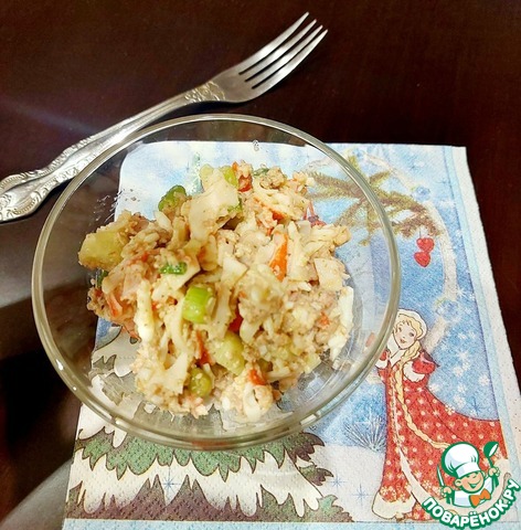 Вкусный, нежный на вкус салатик из вполне доступных продуктов, с гармоничным вкусом. Делается быстро.