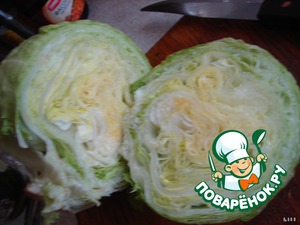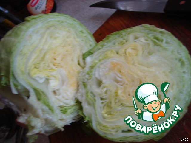 Нарезаем крупно "Айсберг" - очень вкусные и хрустящие листики.