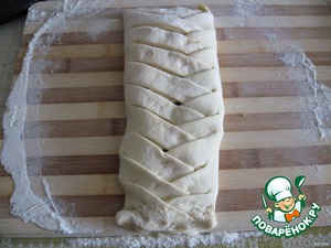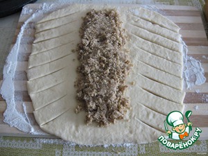 Выложить начинку на середину пласта, а по краям сделать надрезы. -