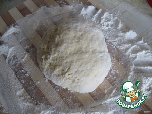 Когда тесто подошло, раскать его в тонкий прямоугольный пласт (у меня маленький противень, поэтому тесто делила на 3 части).