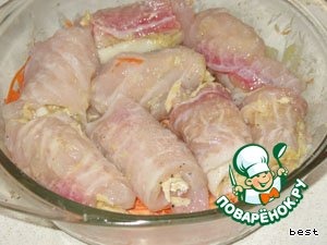 Рецепт «Рулетики из рыбы на овощном ложе»: