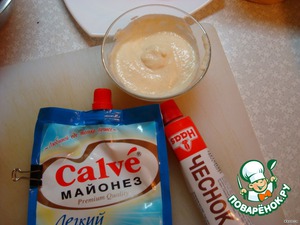 Приготовить смесь из майонеза и чеснока. Я беру чеснок в тюбике, но можно и просто подавить.