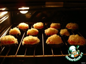 Поставить получившиеся баклажаны в горячую духовку. Оставить там до тех пор, пока не расплавится сыр.