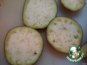 Нарезать баклажаны кольцами (резать можно как угодно, просто так удобнее есть).