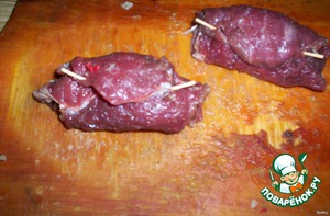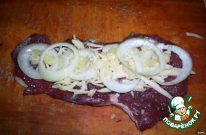 Мясные рулетики с луком и сыром... Рецепт с пошаговыми фотографиями.