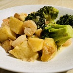 Креветки с брокколи в сливочном соусе