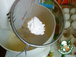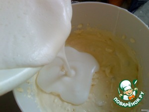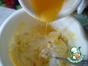 Желтки растереть с 2/3 стакана сахара до пены. -