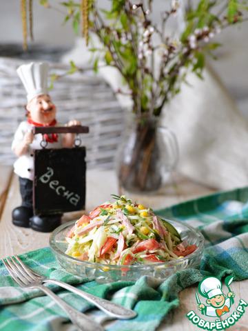 Супруг назвал этот салатик "Весна". Быть по сему! Салатик и впрямь весенний - яркий, сочный, витаминный. И что особенно приятно - занимает в приготовлении минимум времени, что весной очень ценится!