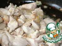 Обжарить куриное филе вместе с нарезанной луковицей до готовности, мясо должно быть мягким. Отварить пасту до состояния "аль денте". |