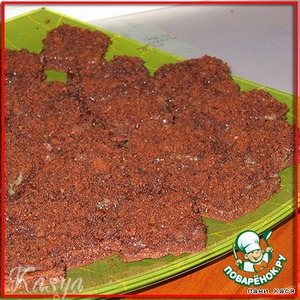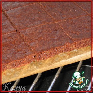 помадку сварили (если жидкая, добавьте чуть муки) - мажем квадратики
