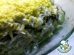 Сверху салат полить майонезом и посыпать натeртыми на самой мелкой тeрке желтками.