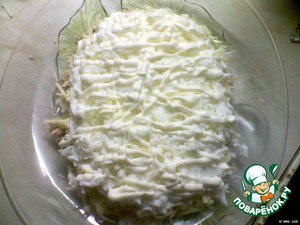 Далее снова повторить слои, только вместо горбуши положить сайру.